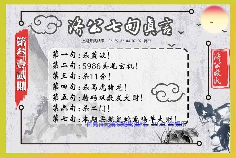 | 315期:必中天机/特七决/正版欲钱料/特码生肖诗/澳门天机诗 |